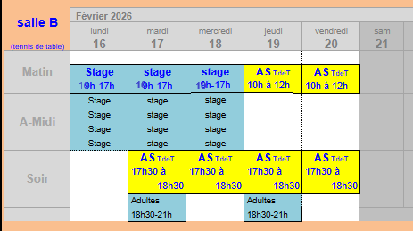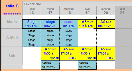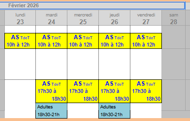 Entrainements libres pour adultes loisirs et compétiteurs : mardi et jeudi, de 18h30 à 21h