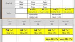 Au programme à la halle des sports d’Ergué Armel : Stage de perfectionnement, séances atout sport, pratique libre, stage d’initiation + 1er tour du circuit des jeunes samedi 25 après-midi + sport santé samedi 25 à la salle Dan ar Braz + stage féminin dimanche 2 novembre de 10h à 16h