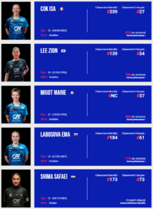 Voici les joueuses 2024-2025, leur classement, leur nationalité et leur date de naissance: