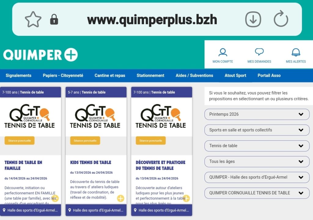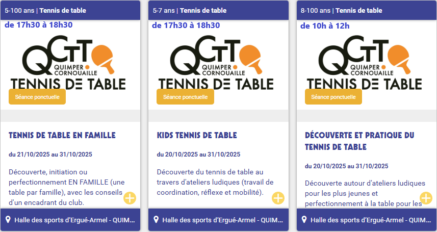 Renseignements, jours, horaires (10h-12h et 17h30-18h30) et inscriptions en ligne sur https://www.quimperplus.bzh/catalogue-dactivites/?partenaire=27