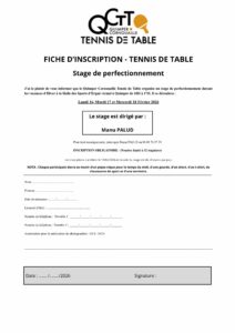 - Un stage de perfectionnement de 3 jours pour les compétiteurs jeunes et adultes les lundi 16, mardi 17, mercredi 17 de la 1e semaine des vacances de février.