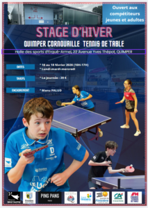 Le Quimper Cornouaille Tennis de table organise durant les vacances de FÉVRIER :
