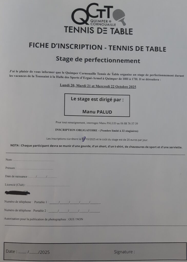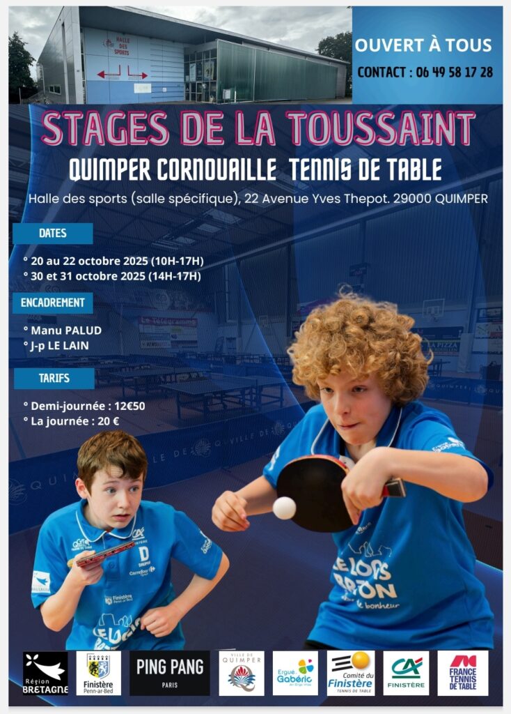 Il a lieu les lundi 20, mardi 21, mercredi 22 octobre 2025 de la 1e semaine des vacances de la Toussaint à la halle des sports d’Ergué-Armel, de 10h à 17h, sous la direction de Manu Palud.